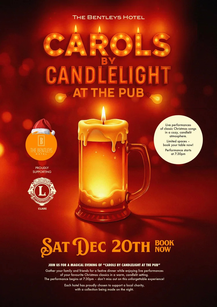 We’re delighted to welcome back Carols by Candlelight at the Pub to the Bentleys Hotel on Saturday, 20th December!
